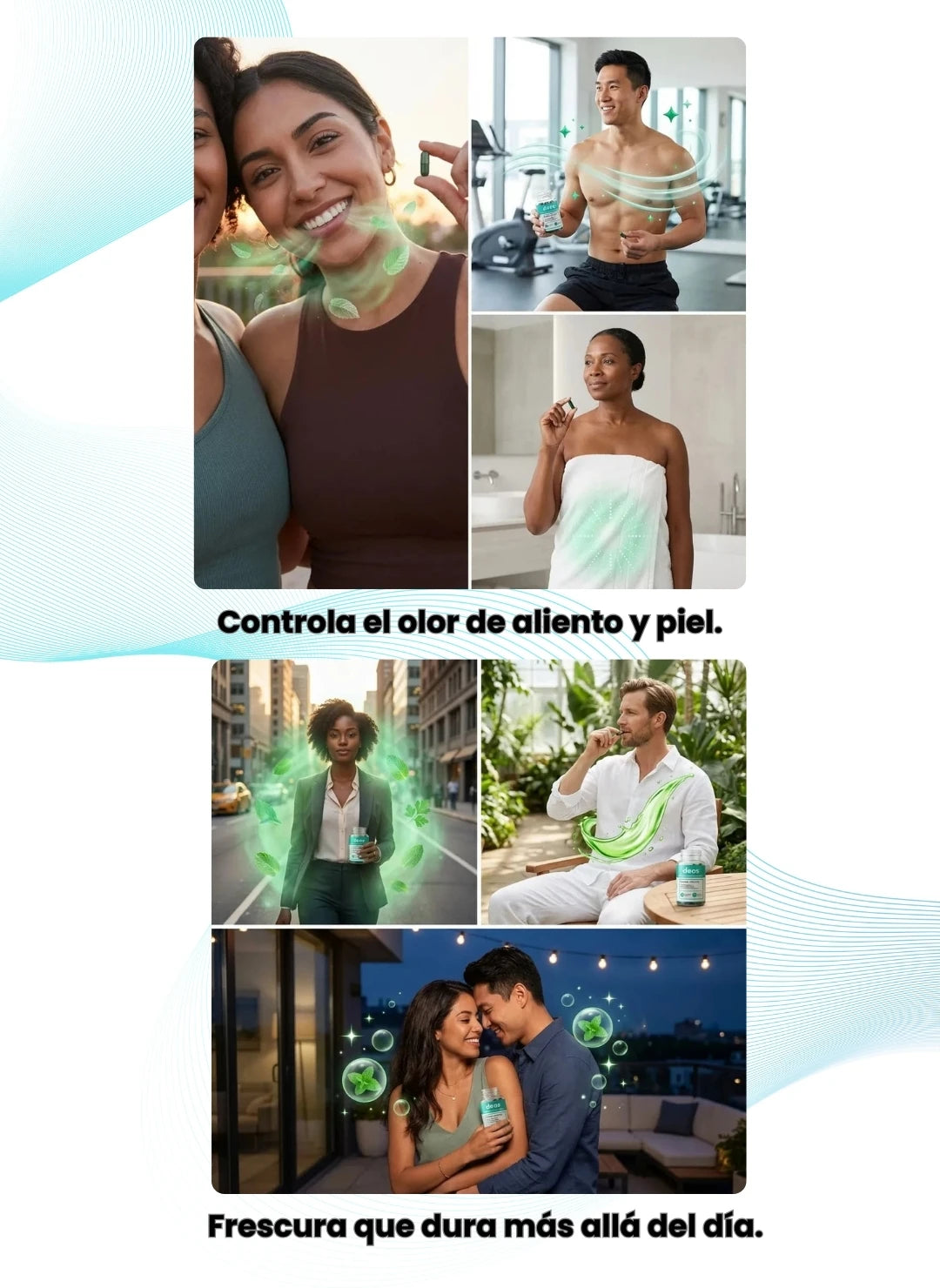 Son ingredientes naturales como la clorofila y el perejil. Piensa en ello como un complemento para la frescura. Recuerda que todos los cuerpos son diferentes, por lo cual debes estar al tanto de tu proceso al probarlo.