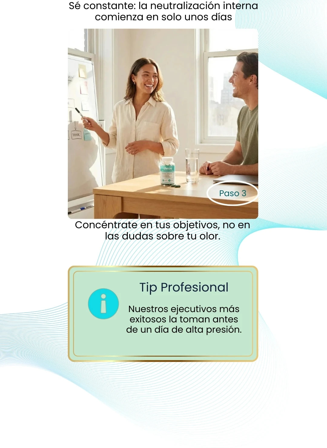 No enmascara, neutraliza desde dentro. Es ciencia, no magia. Ataca el problema de raíz en tu sistema.